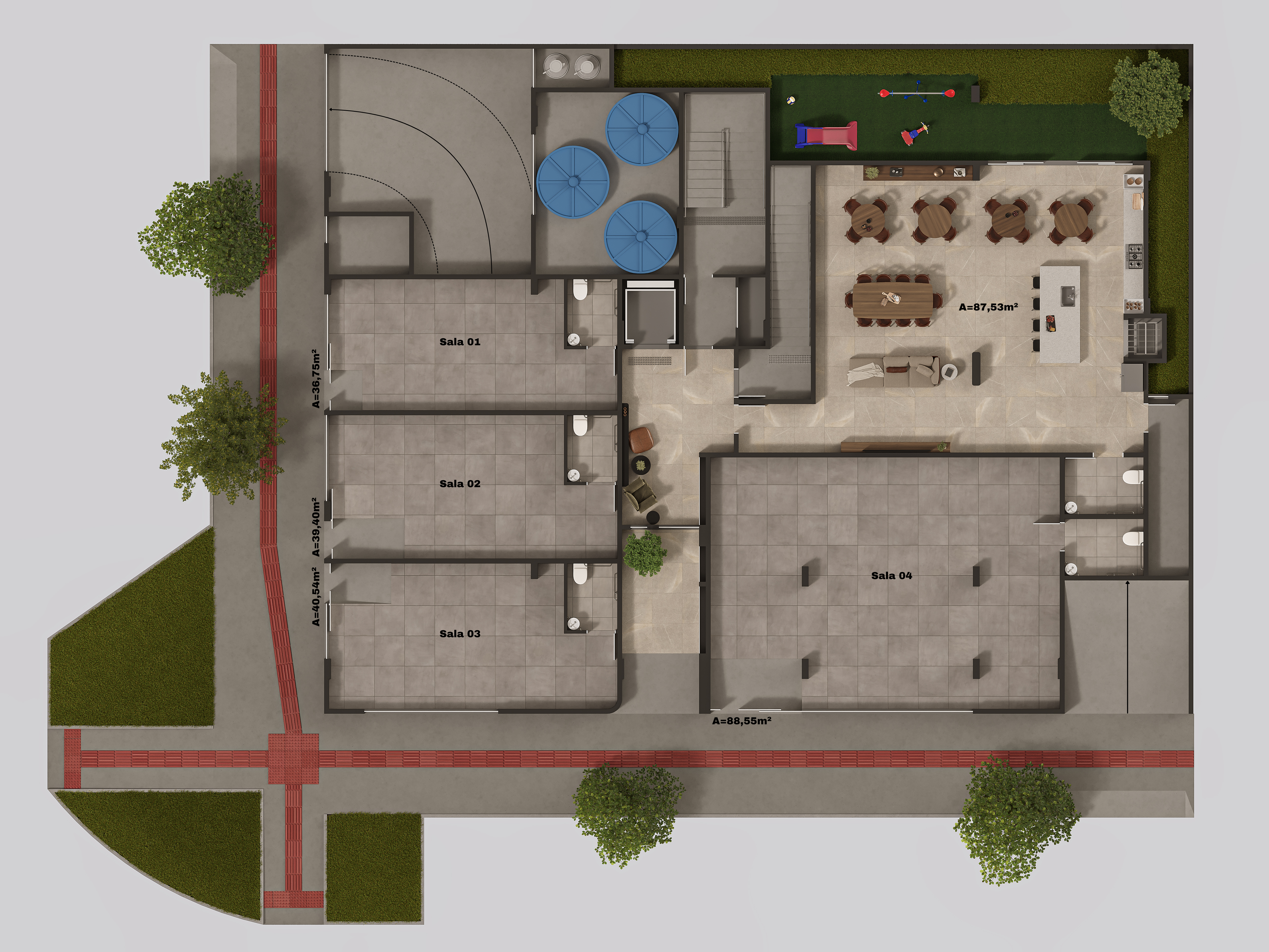 • Iluminação coletiva toda em Led e com sensor de presença;
